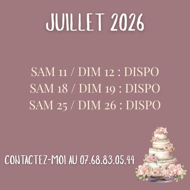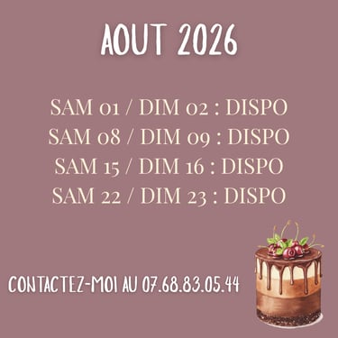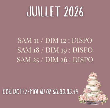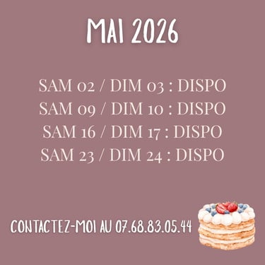 Voici les disponibilités de La Caravane Gourmande pour vos événements (mariage, anniversaire, baptême, kermesses,...)